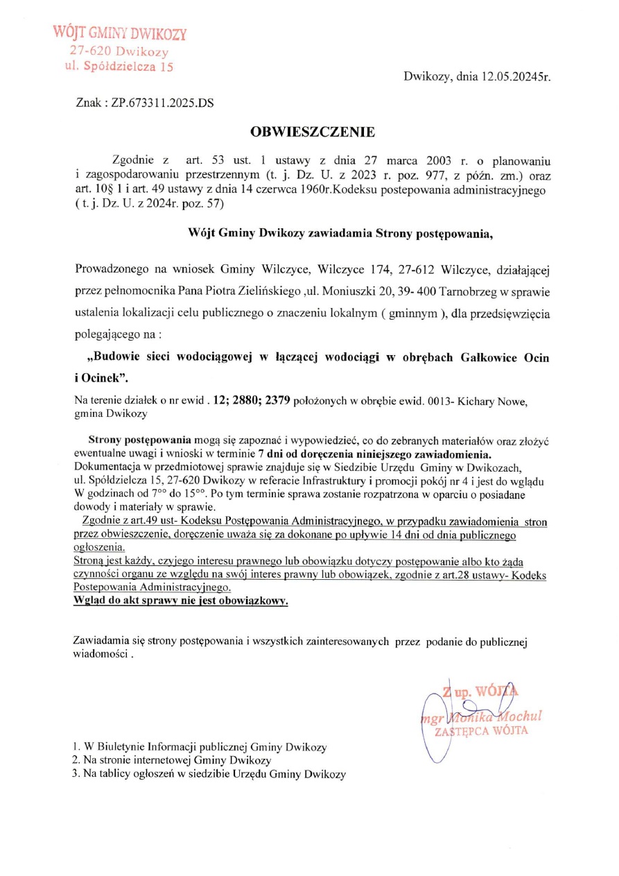 Obwieszczenie Wójta Gminy Dwikozy
